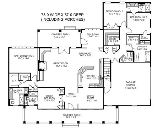 | Description: This beautiful traditional home features many aminities such as 4 bedrooms, computer room, sun room and spacious great room. Covered front and rear porches complete this open design. |