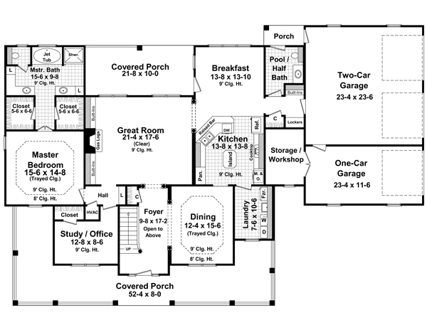 | Description: This beautiful traditional country plan features all the "most requested" features that your family desires in a home. The ever popular "wrap-around" porch offers a warm and inviting look and provides a great place to relax with family and friends. The entrance through the foyer is open to the second floor above and adjoins the formal dining room. The large great room includes a gas log fireplace, built-in cabinets, and views to the rear covered porch. A well-equipped kitchen complete with island and raised bar is another highlight of this plan. The master suite features a trayed ceiling, his and her closets, dual lavatories, jet tub, separate shower, and compartmented toilet. A home office is also provided on the first floor. The second floor contains three additional bedrooms, each with their own walk-in closet. A large future gameroom is also provided as well as additional floored attic space for storage or future expansion. This home truly is the perfect plan for you and your family. |
