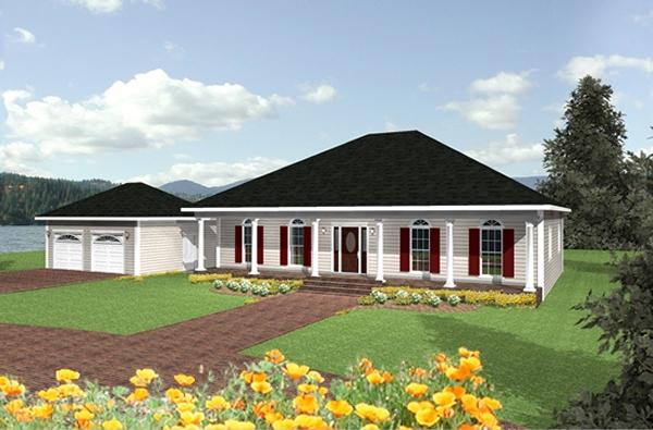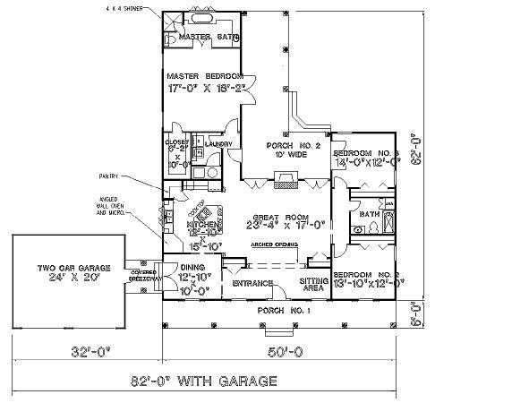 | Description: Wide Country Porches for Summer Nights, Arched Entryway at Sitting Area and Great Room with Column Accents. Open Floor Plan Between Kitchen and Great Room. Great Room has A Gas Fireplace and Double French Doors Leading onto Rear Porch. Kitchen has a Large Island with Cooktop and Snack Bar, Angled Wall Oven, Built In Microwave and an Angled Pantry for Easy Access. Master Bedroom Has A Nice Walk In Closet and An Access to the Rear Porch. The Master Bath has a Whirlpool Tub and Large Custom Shower. Bedrooms 2 & 3 Share a Large Bath, Bedroom 3 has Access to the Rear Porch with French Doors. |