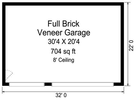 Description: 3 car garage w/brick veneer on all sides. Standard 8' ceiling; single plus double overhead doors.