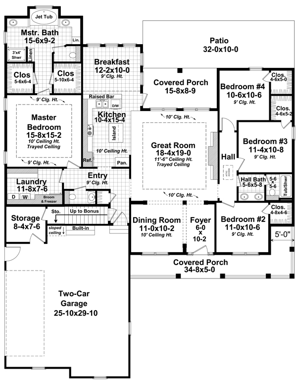| Description: This beautiful design offers traditional neighborhood styling along with great floor plan features. The great room features a trayed ceiling, built-in cabinets, and excellent views. A well-equipped kitchen offers easy access to the formal dining room as well as the casual breakfast area. The expansive and well-appointed master suite includes a trayed ceiling, his and hers walk-in closets, an oversized garden tub, separate shower, compartmentalized toilet and dual vanities. Three other bedrooms each have a walk-in closet and share a second bath. The bonus room provides a great space for a gameroom or home office and even has space for an optional bath. A large 2 car garage with separate storage is also provided. The functional floorplan and attractive exterior combine to make this a plan that you and your family can be proud to call home. |