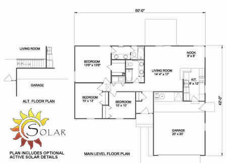 Master Bedroom with walk-in closet and private Bath. Plan includes optional Active Solar Details. |