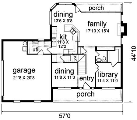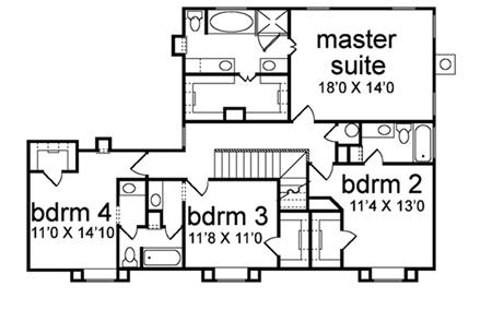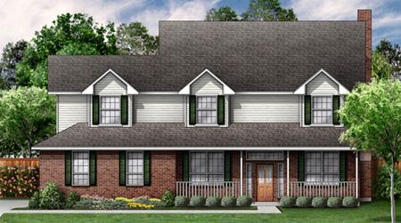 | Description: Growing family but tight budget? This is the plan for you! This charming country home features both a front and back porch with formal dining and living/library greeting you at the entry. The family has a fireplace, built-ins, great view to the backyard and serving bar from the kitchen. The dinette sports a bay window. The kitchen has ample cabinet space, a butler's pantry and access to the oversized utility room. Note the storage area in the garage; shown as a side entry, but could be a front entry. Upstairs the family spreads out in three large children's bedrooms with walk-in closets. Two bedrooms share a Jack-n-Jill bath; one bedroom has a private bath. Note the cute box windows in each room. The oversized master suite has a view to the backyard, garden tub with separate shower, two vanities and double closet. And the timeless elevation reminds of days gone by when family came first!