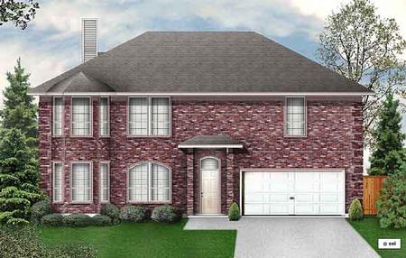 Description: This plan is for a growing family on a budget. The formal living/dining greet you from the entry. The family room has a fireplace and view to the backyard. The large kitchen sports an island, pantry and breakfast counter. The half-bath, garage and utility are conveniently placed off the dinette. Upstairs, three bedrooms, each with a walk-in-closet, share a large bath. The oversized gameroom has a great view of the backyard. And the master suite has a double vanity, garden tub, shower and large closet. This compact house sports a traditional elevation with bay windows and brick veneer.